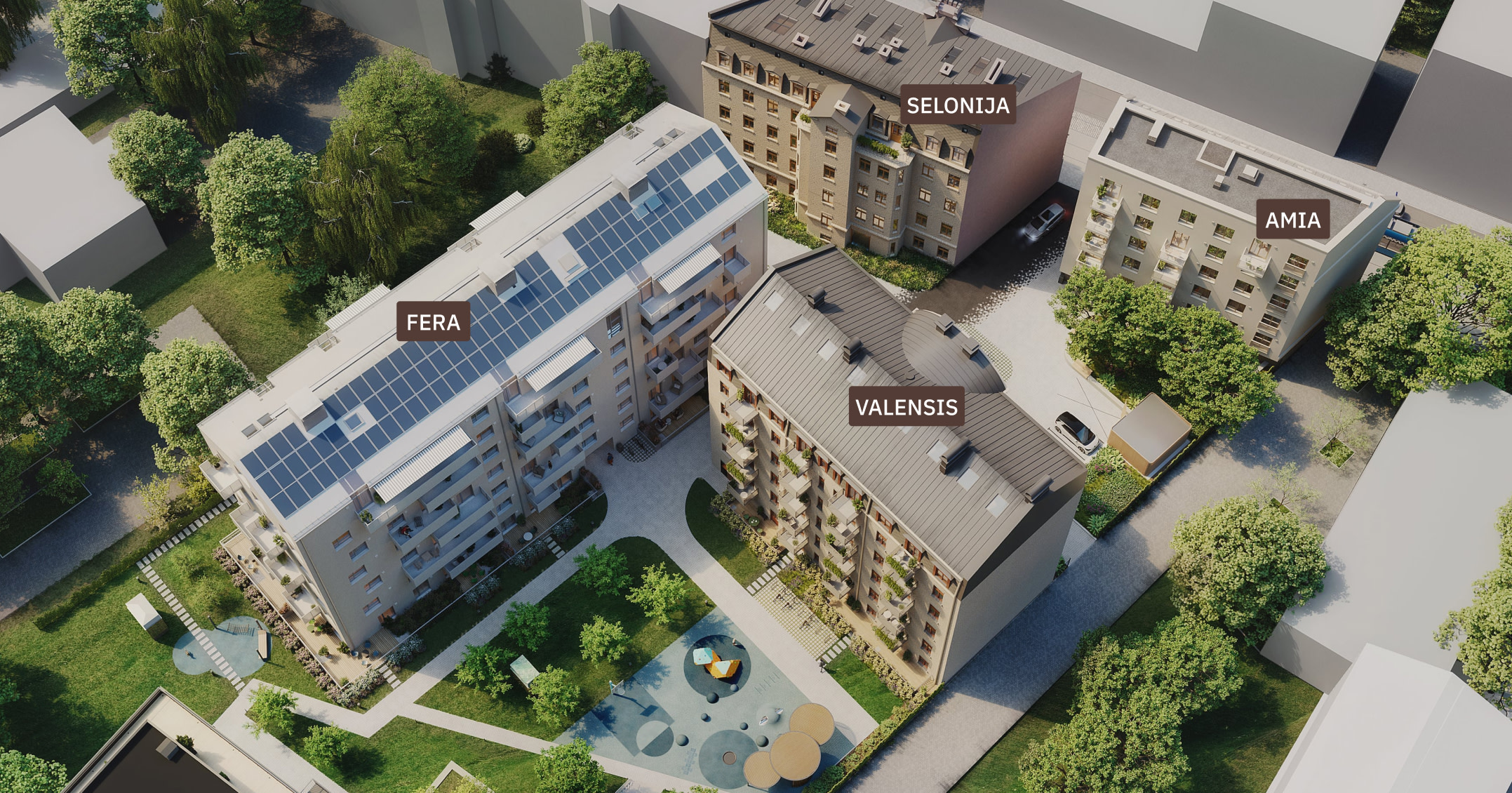 Visaugstāk un visplašāk – pagalma ēku FERA un VALENSIS augšstāvos vietu raduši izsmalcināti divstāvu loft dzīvokļi. Telpas ar dabiski krītošu gaismu, atvērtu plānojumu un iespaidīgu griestu augstumu rada to laimes sajūtu, kas rodas, kad skats veras pretim saulei vai plašumam.