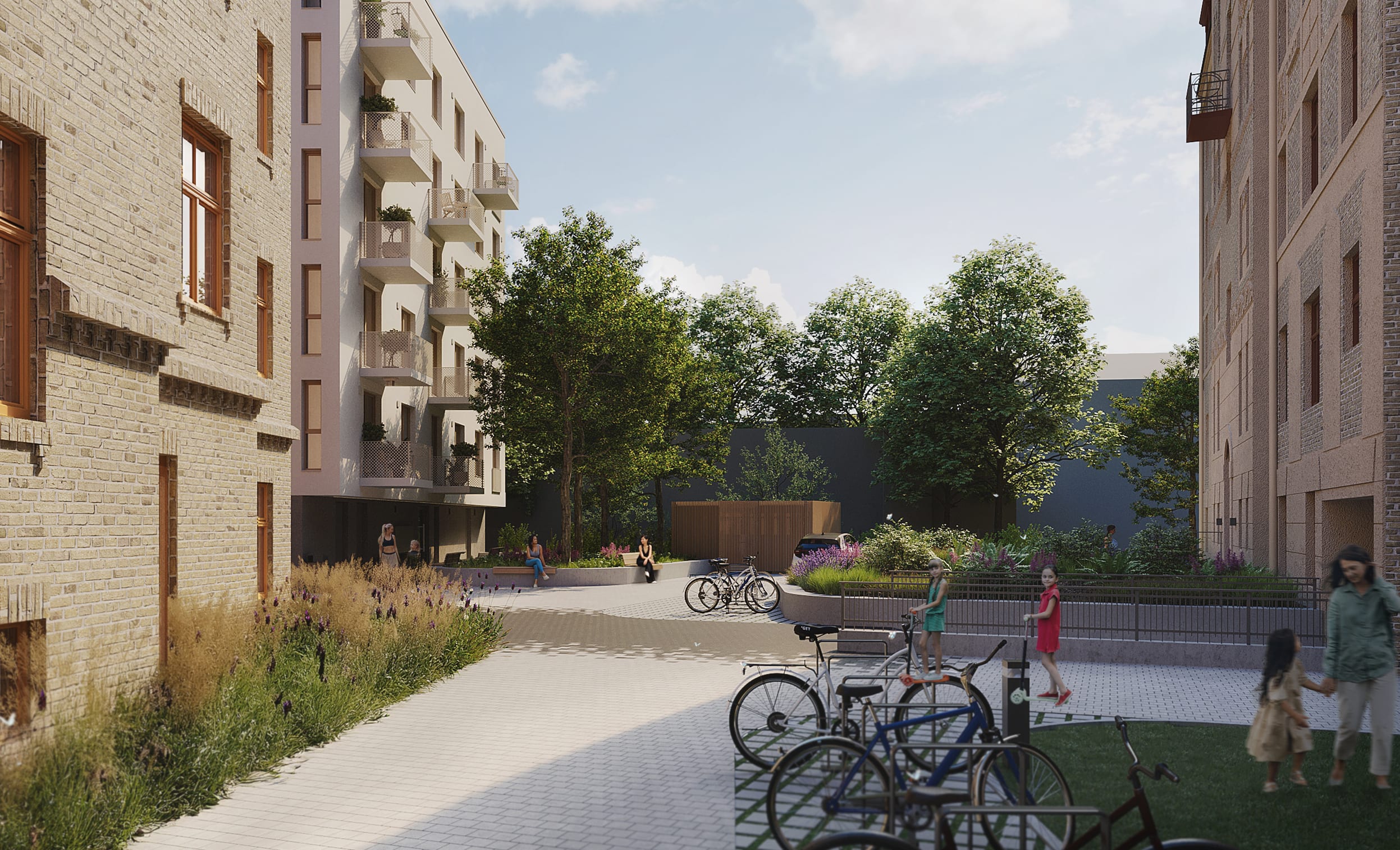 Kvartāla teritorija tiks labiekārtota ar īpašu uzmanību kvalitātei un iedzīvotāju ikdienas vajadzībām. Plānots ierīkot atpūtas zonas, bērnu rotaļu laukumus, kā arī lapenīti, radot vidi, kas veicina gan mierpilnu ikdienu, gan aktīvu dzīvesveidu. Atrašanās vieta Klusā centra un Skanstes tuvumā ļauj baudīt kultūru, arhitektūru un izcilu infrastruktūru, tostarp Viesturdārza parku un Andrejostu – vietas, kur pulcējas pilsētas radošā enerģija.